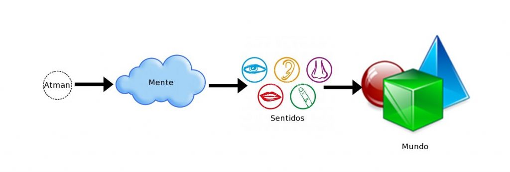 Como vemos, al contrario que ocurre en occidente, la percepción no acaba en la mente sino que la propia mente es considerada como «algo» observable por la conciencia o testigo. El perceptor o Saakssii (साक्षी) se considera el observador final. Éste debe ser asimilado al Atman, aquel que da la vida y que está fuera del tiempo y el espacio. Es el testigo de todo lo que nos acontece, pero no se encuentra afectado por ello.