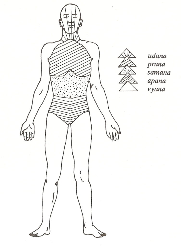 Prana, Apana, Samana, Udana y Vyana.